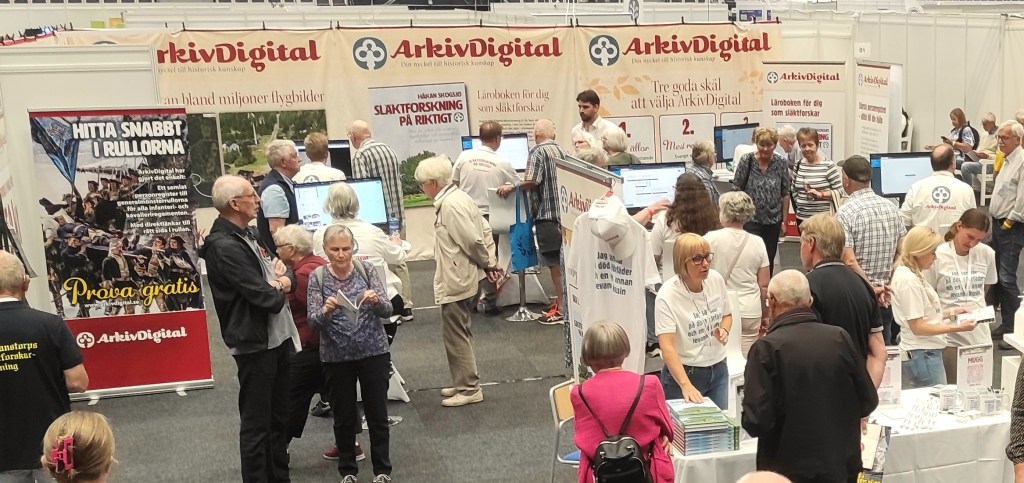 There were over 40 different exhibitors, all relevant for Swedish genealogical research. But some things were missing, Norway should have had a stand in one capacity or another, either genealogy societies or the Norwegian Archives. Here is a list of those who were present. First and foremost; ArkivDigital (which claims to be Sweden’s most complete genealogy service), genealogy societies, both national and regional/local societies, archives and libraries, emigration societies, societies from other countries (Germany, the Baltic countries and the international ones like Ancestry, FamilySearch, MyHeritage and FamilyTreeDNA), Centrala Soldatregistret (an online register of soldiers) and more.