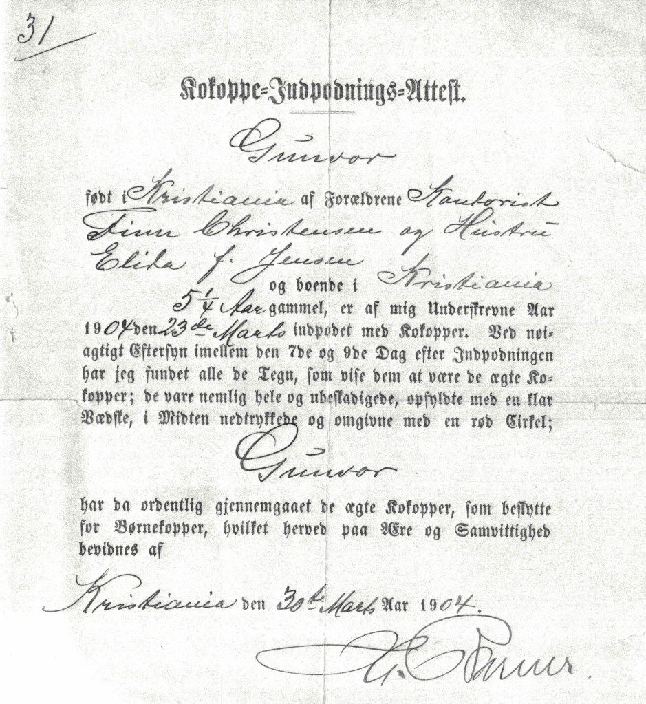 Gunvor was born in 1898 in Kristiania (later called Oslo) on the 23rd of December. She was most likely born at home in Just Høegs Gade, at Hammersborg. This is a central part of Oslo; I remember that my grandfather told us that he had lived at Hammersborg. Her father, Finn Christensen, was a clerk in a book bindery, her mother, Marie Elida Jensen, used to work at one before she was married, perhaps the same one?